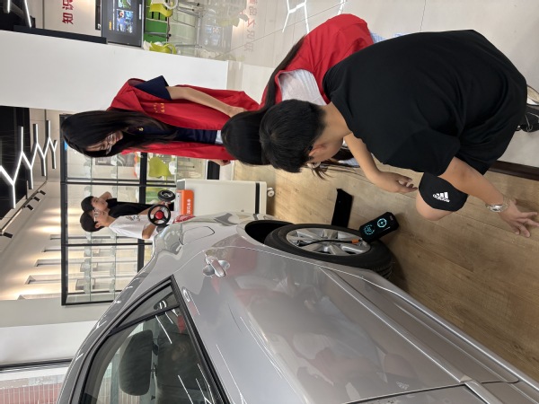 在理论讲解之后,最令人期待的实践环节——车辆胎压监测和维护正式拉开帷幕。志愿者们将同学们分成小组,手把手地教他们如何使用胎压监测设备,如何读取数据,并根据数据判断轮胎的胎压是否正常。同学们在志愿者的指导下,小心翼翼地操作着设备,眼神中透露出专注和好奇。当发现轮胎胎压异常时,志愿者们又耐心地讲解如何进行正确的胎压调整和维护,让同学们亲身体验到汽车维护工程师的实际工作内容。