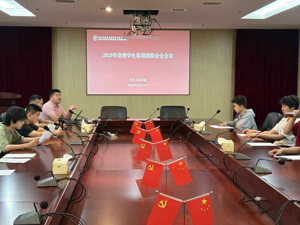 2025 年 6 月 17 日,汽车工程学院针对竞赛班学生组织召开暑假训练安全专项会议,副院长许文杰、夏浦杰老师出席会议并部署安全管理工作,全体竞赛班学生参会。
