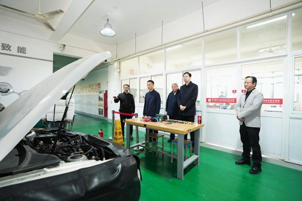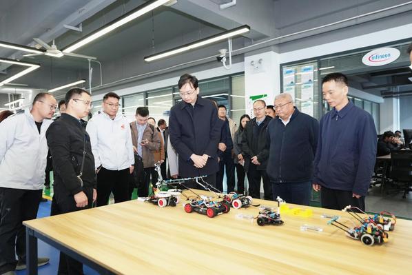活动伊始,在学校领导的陪同下,与会嘉宾参观了学校的先进实训室,直观感受了学校雄厚的办学实力与紧跟产业发展的教学设施。